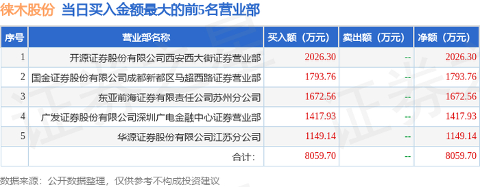 证券之星消息,沪深交易所2025年9月22日公布的交易公开信息显示,徕木股份(603633)因有价格涨跌幅限制的日收盘价格涨幅偏离值达到7%的前五只证券登上龙虎榜。此次是近5个交易日内第1次上榜。