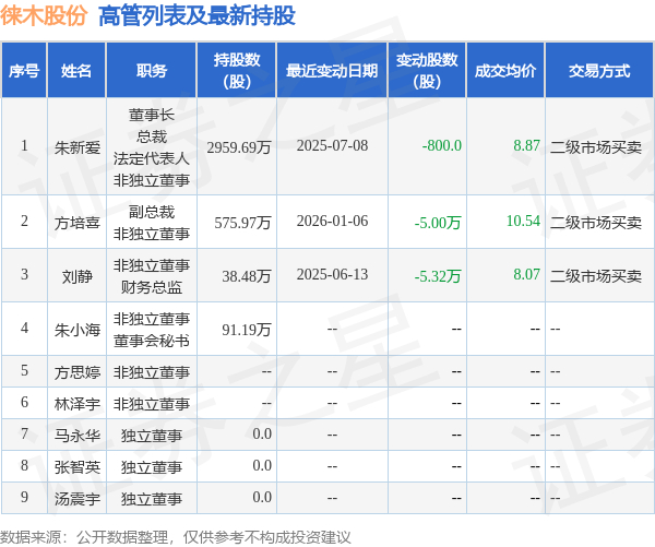 徕木股份近半年内的董监高及核心技术人员增减持详情如下: