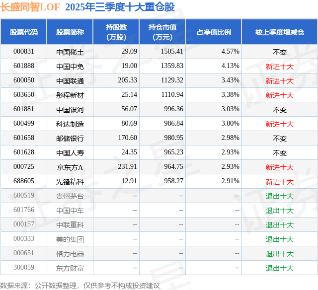 根据2025基金Q3季报公募基金重仓股数据,重仓该股的公募基金共3家,其中持有数量最多的公募基金为长盛基金的长盛同智LOF。长盛同智LOF目前规模为3.29亿元,最新净值0.7204(11月18日),较上一交易日下跌0.62%,近一年上涨2.9%。该公募基金现任基金经理为钱文礼。钱文礼在任的基金产品包括:长盛成长龙头混合A,管理时间为2021年4月21日至今,期间收益率为-42.18%;长盛成长精选混合A,管理时间为2023年6月29日至今,期间收益率为0.34%。