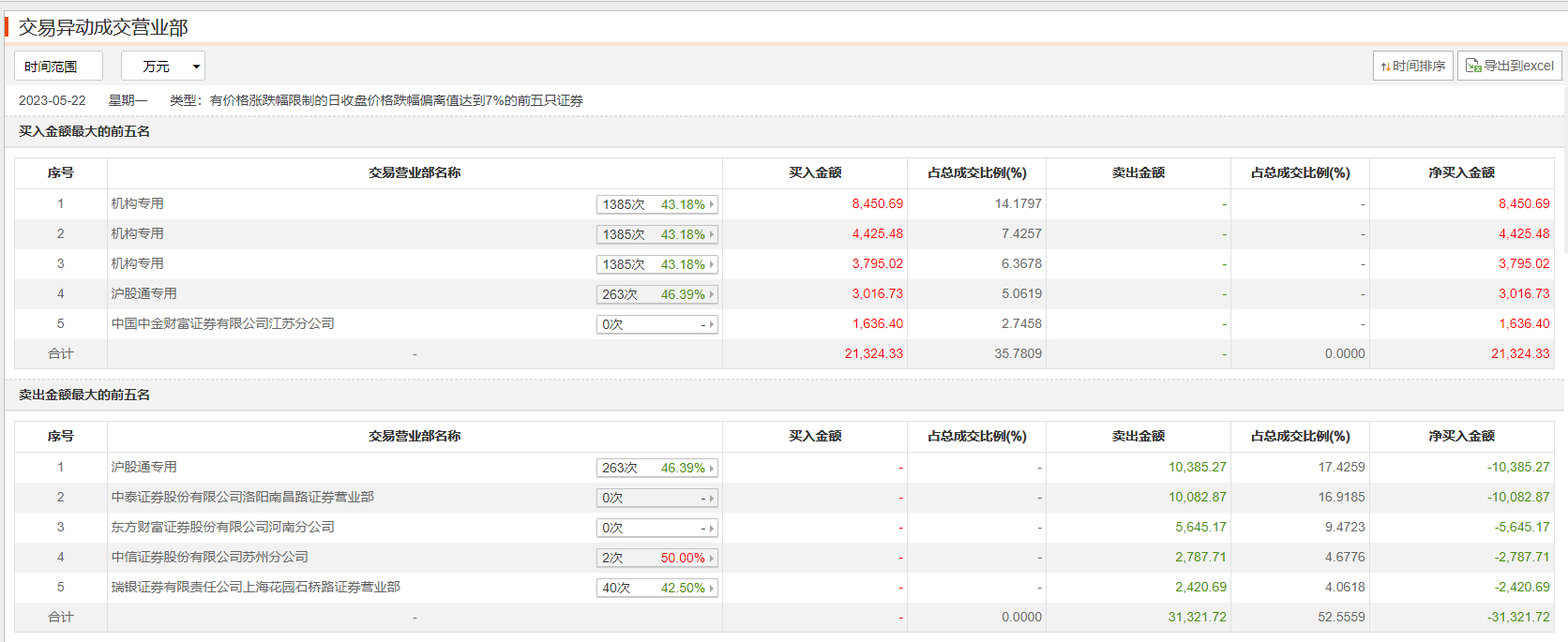 具体来看,机构合计净买入1.67亿元。此外,沪股通专用、中泰证券洛阳南昌路证券营业部分别卖出1.04亿元、1.01亿元;沪股通专用、中国中金财富证券有限公司江苏分公司分别买入3016.73万元、1636.40万元。