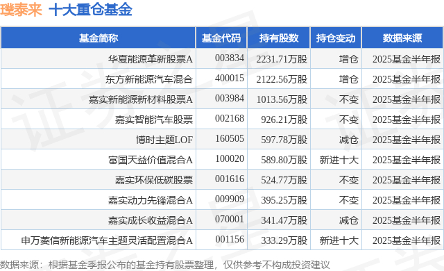 重仓璞泰来的前十大公募基金请见下表: