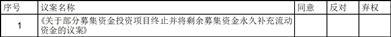 1、 《关于部分募集资金投资项目终止并将剩余募集资金永久补充流动资金的议案》;