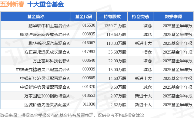 重仓五洲新春的前十大公募基金请见下表: