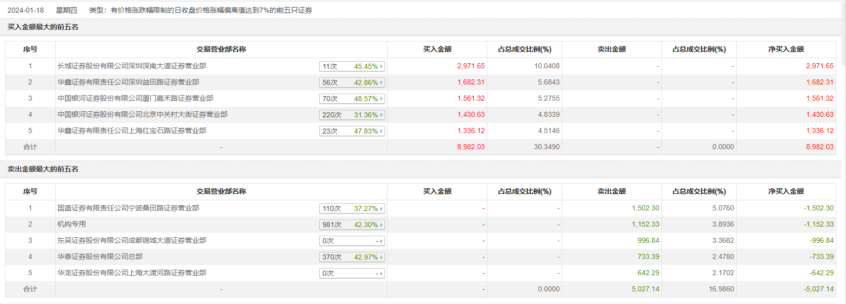 1月18日,华体科技今日涨停,龙虎榜数据显示,上榜营业部席位全天成交1.4亿元,占当日总成交金额比例为47.33%。其中,买入金额为8982.03万元,卖出金额为5027.14万元,合计净买入3954.89万元。