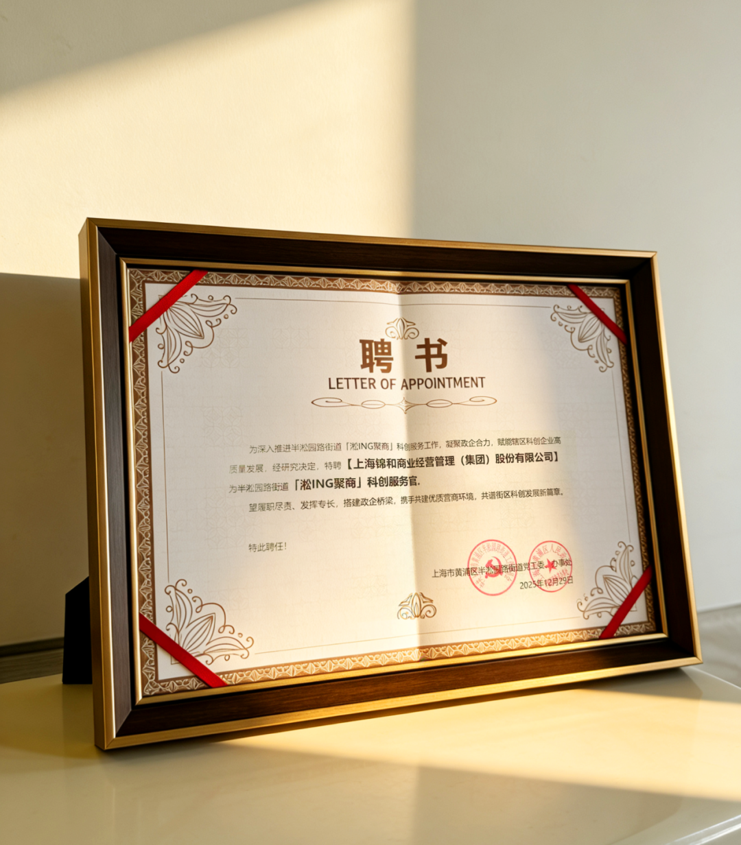 喜讯频传!锦和商管特聘为黄浦区半淞园街道淞ING聚商科创服务官