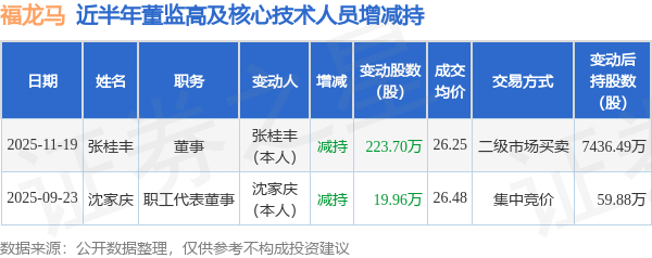 福龙马近半年内的董监高及核心技术人员增减持详情如下: