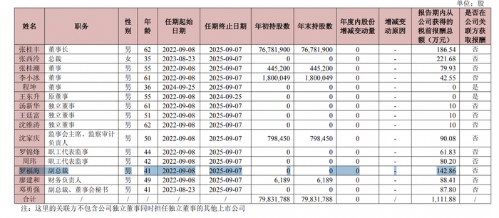 2024年,罗福海从福龙马获得的税前报酬总额为142.86万元,位居董监高第三。