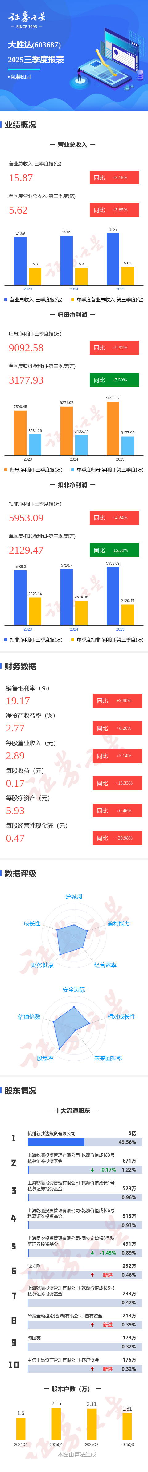 图解大胜达三季报:第三季度单季净利润同比下降7.50%
