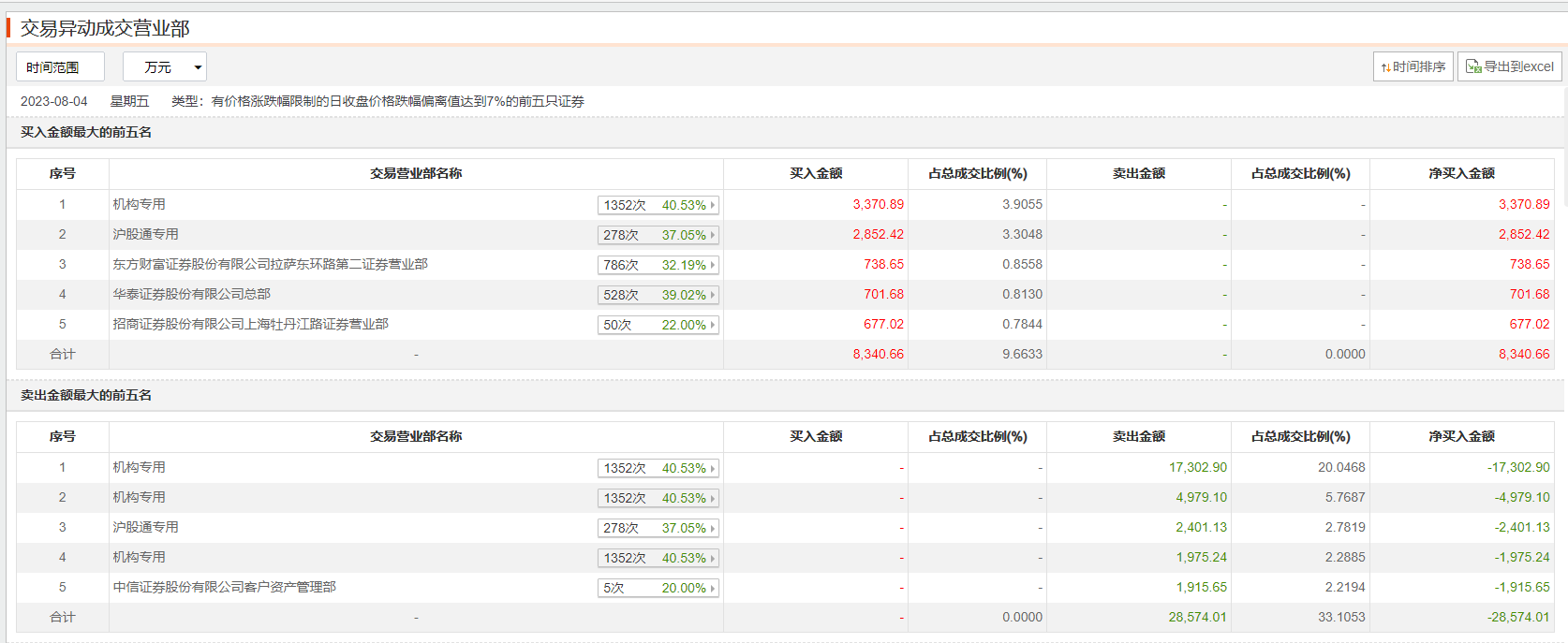 具体来看,机构买入3370.89万元,卖出2.43亿元,合计净卖出2.09亿元。此外,沪股通专用、中信证券客户资产管理部分别卖出2401.13万元、1915.65万元;沪股通专用、东方财富证券拉萨东环路第二证券营业部分别买入2852.42万元、738.65万元。