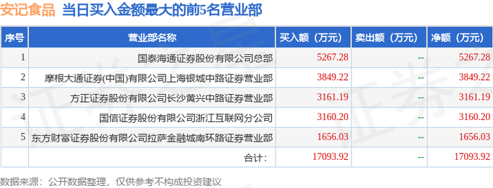 证券之星消息,沪深交易所2025年12月25日公布的交易公开信息显示,安记食品(603696)因有价格涨跌幅限制的日换手率达到20%的前五只证券登上龙虎榜。此次是近5个交易日内第3次上榜。