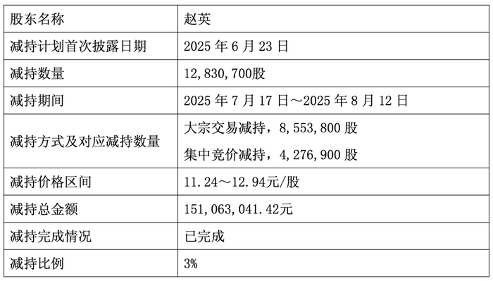 2025年半年报发布前夕,公司实际控制人之一赵英因个人资金需求,通过集中竞价及大宗交易方式减持公司股份1283.07万股,占公司总股本的3%,累计套现1.51亿元,减持完毕后,赵英仍然持有有友食品9.95%的股份。赵英与董事长鹿有忠为夫妻关系。