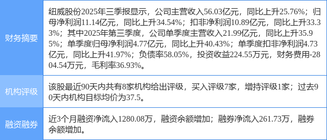 2025年10月25日,东吴证券研究员周尔双,韦译捷发布了对纽威股份的研报《2025年三季报点评:Q3归母净利润+40%超预期,出海订单加速兑现》,该研报对纽威股份给出“买入”评级。证券之星数据中心根据近三年发布的研报数据计算,该研报作者对此股的盈利预测准确度为71.17%。