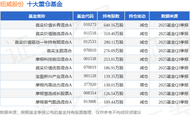 根据2025基金Q3季报公募基金重仓股数据,重仓该股的公募基金共63家,其中持有数量最多的公募基金为嘉实基金的嘉实价值长青混合A。嘉实价值长青混合A目前规模为33.99亿元,最新净值1.0042(12月17日),较上一交易日上涨1.15%,近一年上涨18.45%。该公募基金现任基金经理为谭丽。谭丽在任的基金产品包括:嘉实新消费股票A,管理时间为2017年4月11日至今,期间收益率为144.43%;嘉实价值精选股票A,管理时间为2017年11月6日至今,期间收益率为123.18%;嘉实价值优势混合A,管理时间为2017年11月14日至今,期间收益率为86.8%;