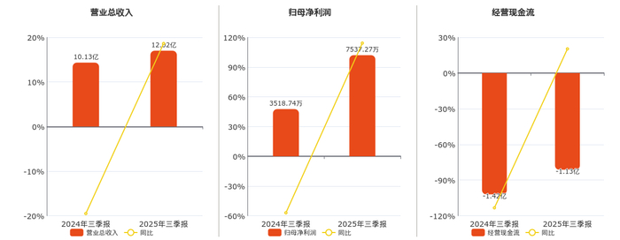 公司营业总收入为12.02亿元。归母净利润为7537.27万元。经营活动现金净流入为-1.13亿元,在已披露的同业公司中排名第195。
