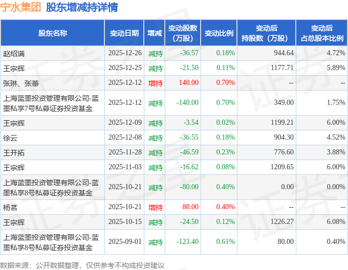 该股近半年内有股东持股变动,合计净减持309.27万股,股东增减持明细如下表: