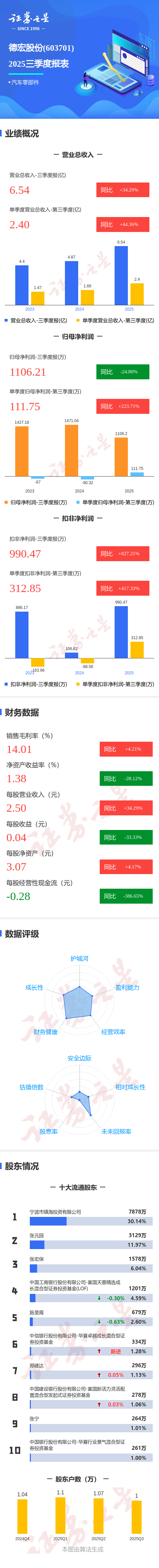 图解德宏股份三季报:第三季度单季净利润同比增长223.72%
