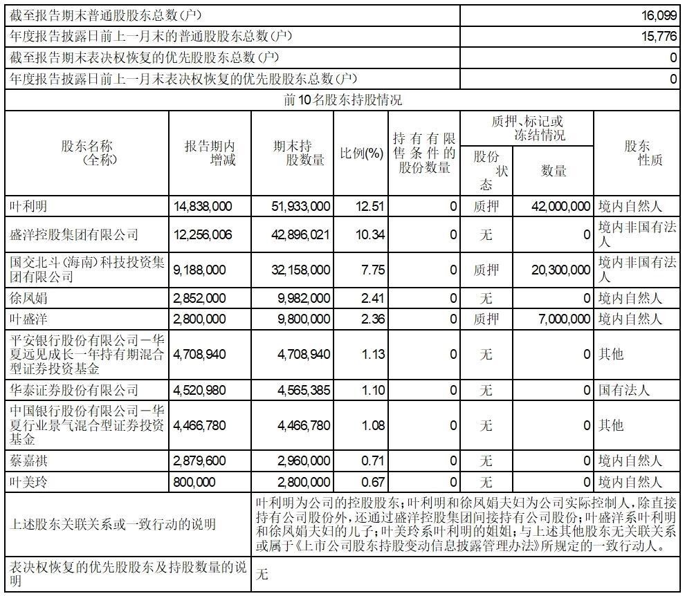 4.1 报告期末及年报披露前一个月末的普通股股东总数、表决权恢复的优先股股东总数和持有特别表决权股份的股东总数及前 10 名股东情况
