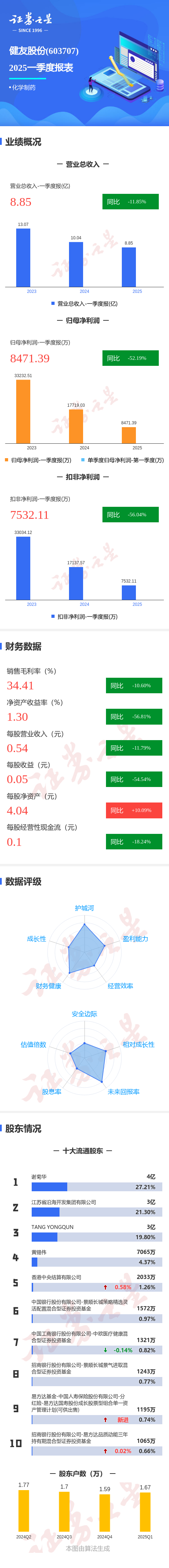 图解健友股份一季报:第一季度单季净利润同比减52.19%