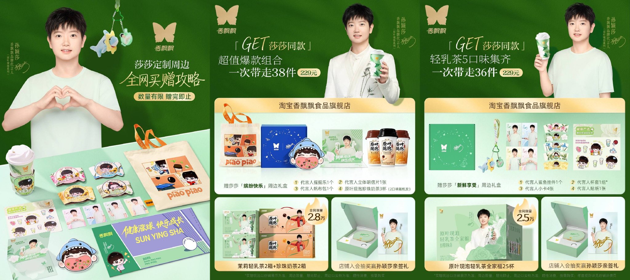 10 月 10 日,香飘飘官宣奥运冠军孙颖莎为品牌代言人,并同步推广品牌原叶现泡系列产品,据悉,该系列为香飘飘旗下高端健康饮品,主打「原叶现泡茶包、真奶入料」和「轻负担」,品牌希望通过此次活力合作一起探索健康新打法,为更多消费者带来高端品质。不仅如此,品牌还将为粉丝推广帆布袋、贴纸、明信片、摇摇乐等多款周边产品并推出众多线下活动。
