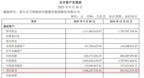 除此之外,三季报中合同负债与预付款项分别增至48.15亿元和59.67亿元,而2024年末这两项数据分别是0.5亿元和8.35亿元,这两项财务数据的异动引发市场关注。