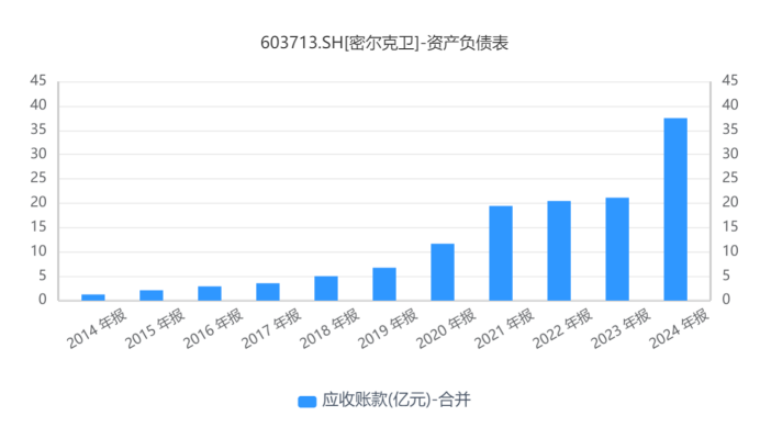 这一点在财务上得到了双重印证:其一是交易业务的低毛利,根据2025年中报,该业务毛利率仅为8%,低于物流业务;其二是持续攀升的应收账款——其总额从2018年至2024年显著增长,表明公司面对“甲方”时往往缺乏议价的主导权,在合作关系中较为被动。