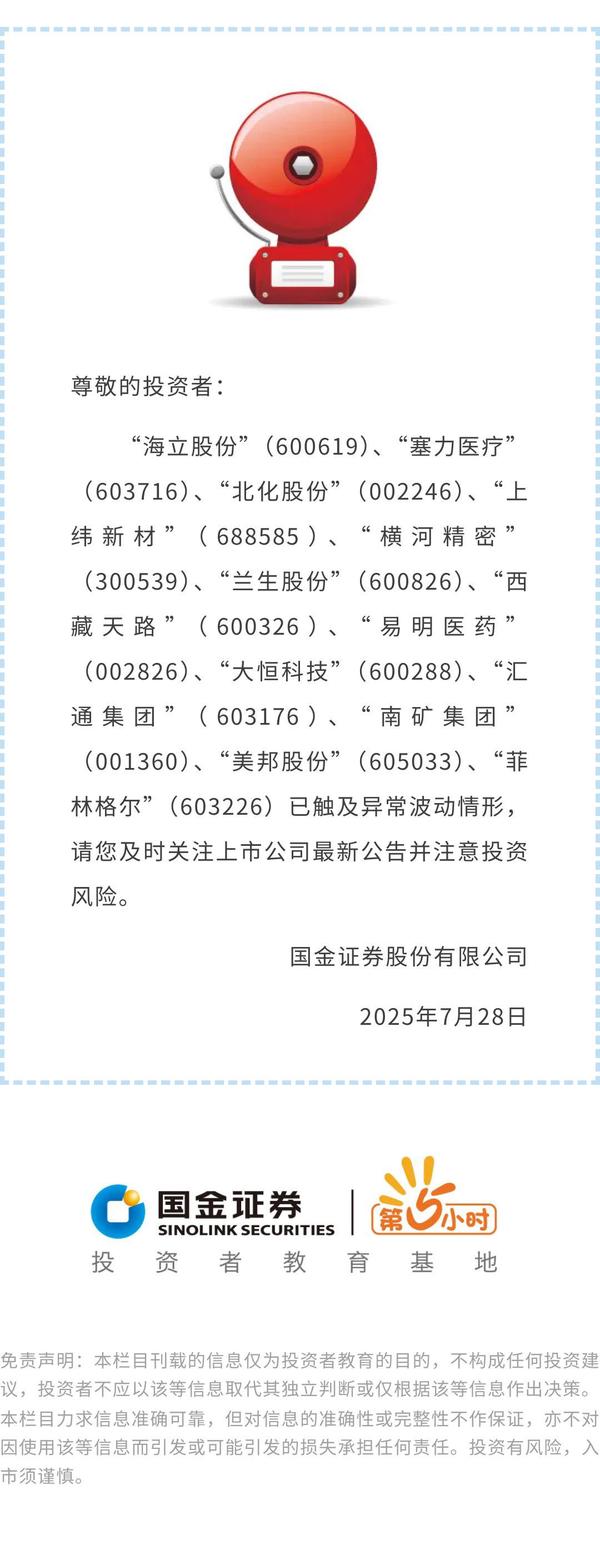 关于“海立股份”、“塞力医疗”等证券交易异常波动的风险提示