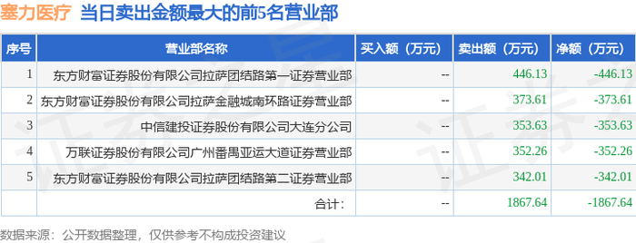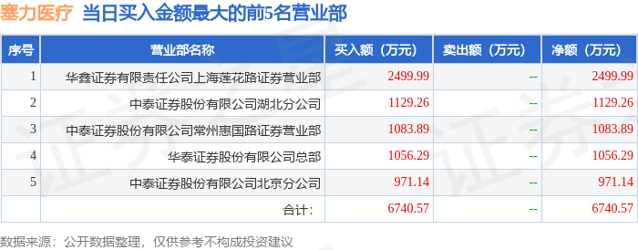 1月5日塞力医疗(603716)龙虎榜数据:游资一瞬流光上榜