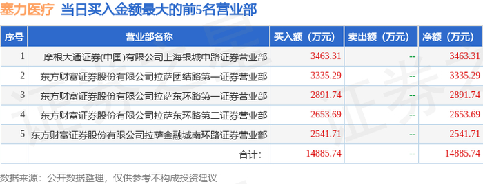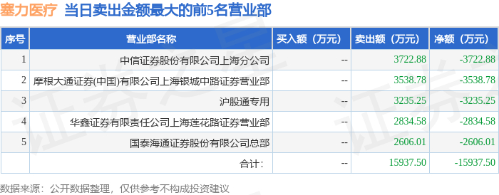 1月7日塞力医疗(603716)龙虎榜数据:北向资金净卖出3235.25万元