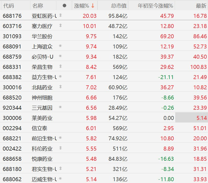 A股创新药概念股集体走强,亚虹医药、塞力医疗涨停