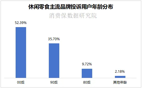 在休闲零食主流品牌投诉用户中,00后(52.39%)与90后(35.70%)合计占比近九成。年轻人已经用行动表明,在零食江湖中,“恨”就是“爱”的另一面。