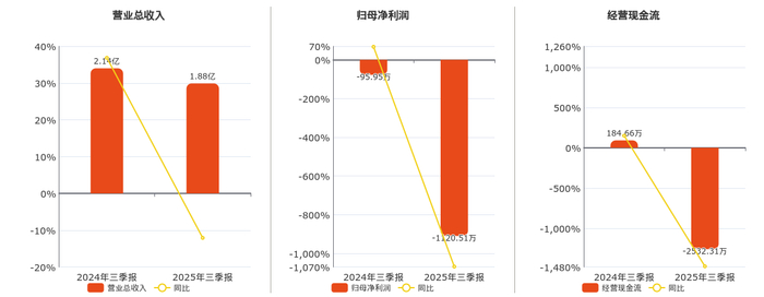 公司截至2025年9月30日,*ST天择营业总收入为1.88亿元。截至2025年9月30日,*ST天择归母净利润为-1120.51万元,较去年同报告期归母净利润增加14.78万元。截至2025年9月30日,*ST天择经营活动现金净流入为-2532.31万元。