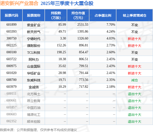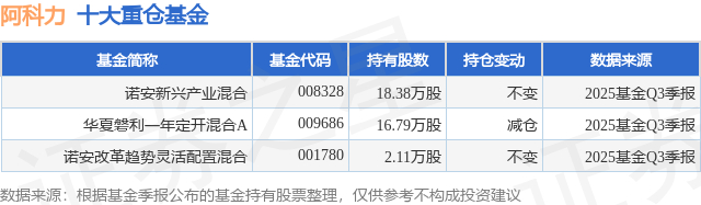 根据2025基金Q3季报公募基金重仓股数据,重仓该股的公募基金共3家,其中持有数量最多的公募基金为诺安基金的诺安新兴产业混合。诺安新兴产业混合目前规模为3.29亿元,最新净值1.8815(11月10日),较上一交易日上涨0.62%,近一年上涨16.65%。该公募基金现任基金经理为杨琨。杨琨在任的基金产品包括:诺安改革趋势灵活配置混合,管理时间为2017年8月29日至今,期间收益率为88.0%;诺安新经济股票,管理时间为2019年2月20日至今,期间收益率为153.05%;