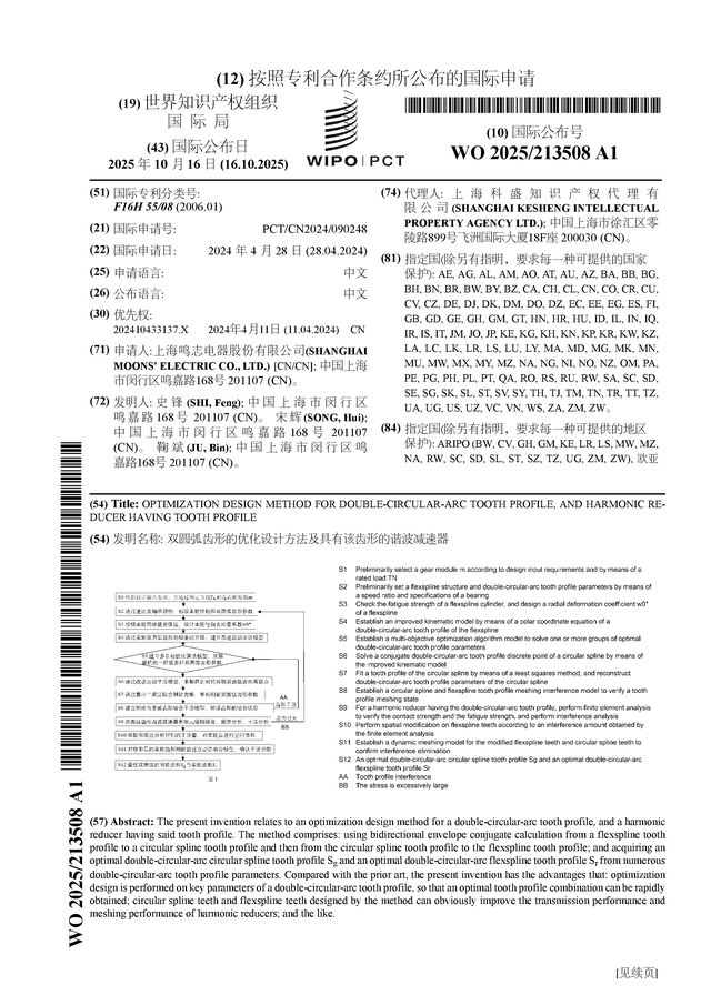 鸣志电器公布国际专利申请:“双圆弧齿形的优化设计方法及具有该齿形的谐波减速器”