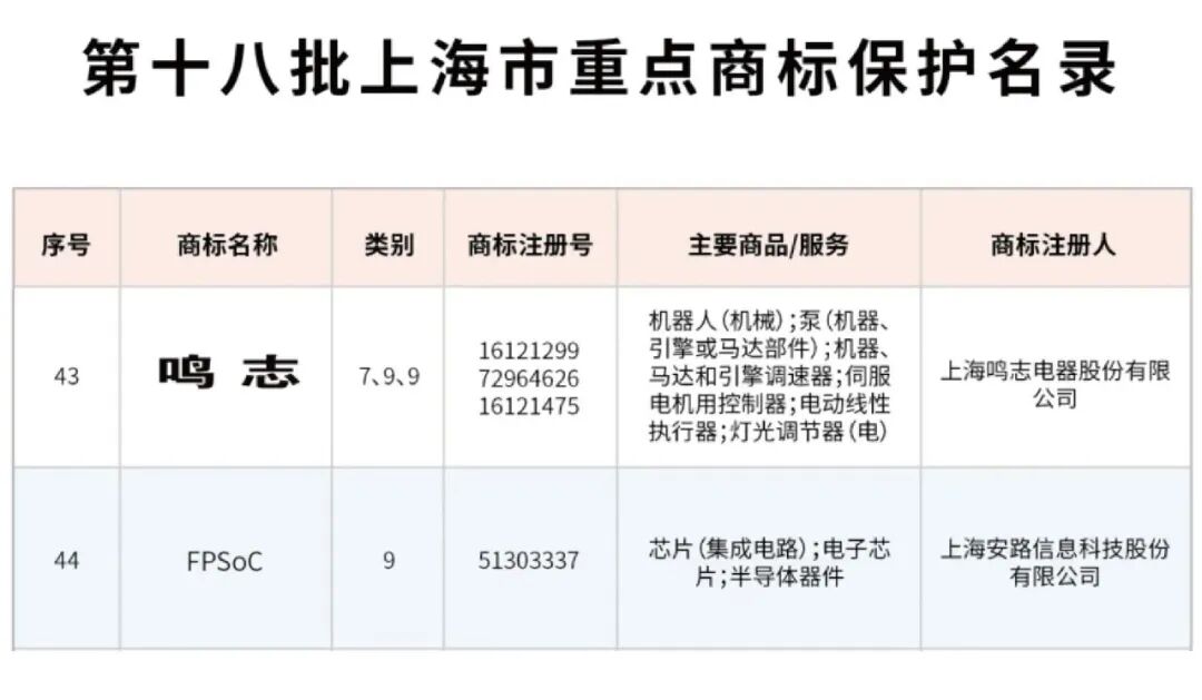 近日,上海市知识产权局正式发布《第十八批上海市重点商标保护名录》,上海鸣志电器股份有限公司旗下核心商标——“MOONS’”与“鸣志”成功入选,标志着公司在知识产权保护与品牌建设方面再获重要认可。