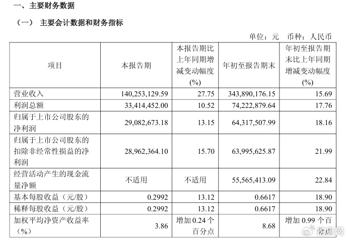 其中第三季度营收1.40亿元,同比增长27.75%,归母净利润2908.27万元,同比增长13.15%。