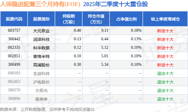 人保稳进配置三个月持有(FOF)的前十大重仓股如下: