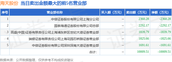 证券之星消息,沪深交易所2025年11月10日公布的交易公开信息显示,海天股份(603759)因有价格涨跌幅限制的日收盘价格跌幅偏离值达到7%的前五只证券登上龙虎榜。此次是近5个交易日内第2次上榜。