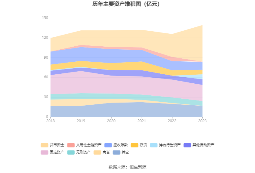 资产重大变化方面,截至2023年年末,公司货币资金较上年末增加59.47%,占公司总资产比重上升12.15个百分点;交易性金融资产较上年末减少91.32%,占公司总资产比重下降4.70个百分点;固定资产较上年末减少10.04%,占公司总资产比重下降4.02个百分点;应收账款较上年末减少15.19%,占公司总资产比重下降2.57个百分点。