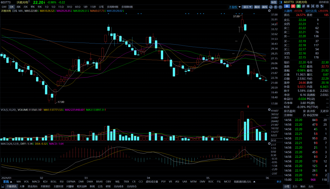 5月16日至5月22日,一度被誉为芯片封装玻璃基板龙头的沃格光电由25.48元上涨至22日最高37元,涨幅45.21%。