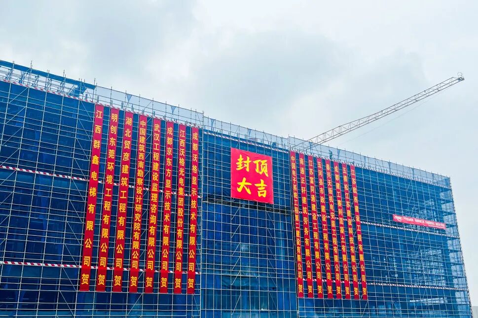 沃格光电成都基地5.9万平方米主楼喜迎封顶