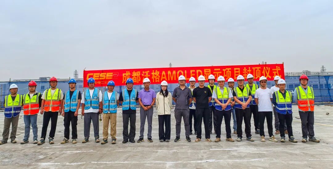 据成都沃格总经理介绍,该项目的建设严格对标国际半导体级洁净厂房标准,相关技术指标属于行业领先地位,并且因过程面临成都连续多日的高温、大雨等不利条件,施工难度大,给项目的进展带来了巨大挑战。但在沃格团队与施工方确保安全与工程质量的前提下,进行科学调配,采取日夜不停歇的作业方式,如期完成了主楼的封顶,向量产目标迈出了坚实的一步。