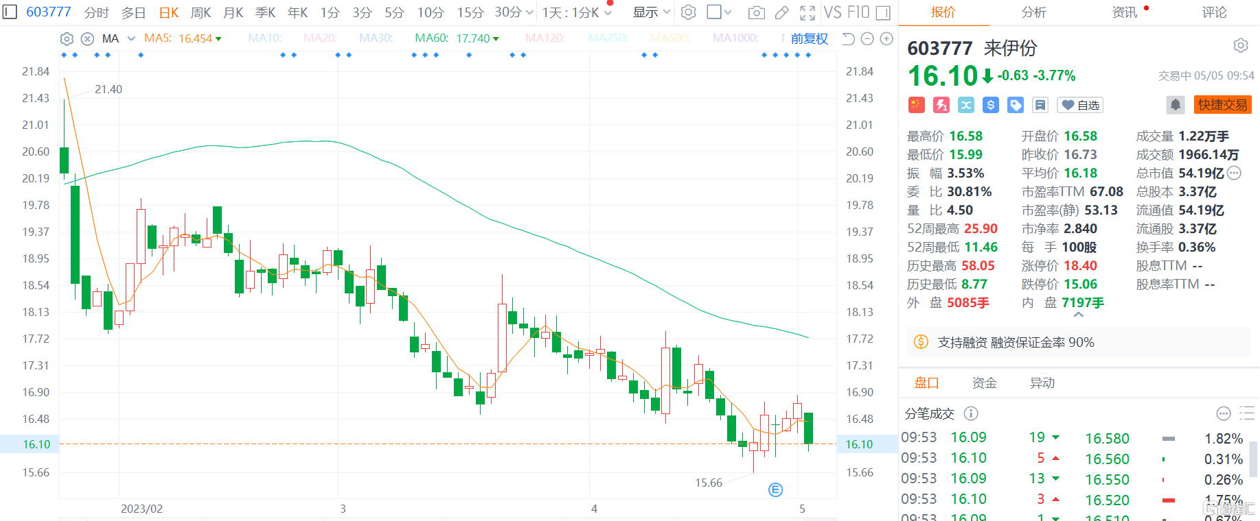 格隆汇5月5日丨来伊份跌约4%,报16.1元,总市值54亿元。来伊份公布,爱屋企管拟通过包括但不限于集中竞价交易、大宗交易等方式减持其持有的公司股份合计不超过3%。