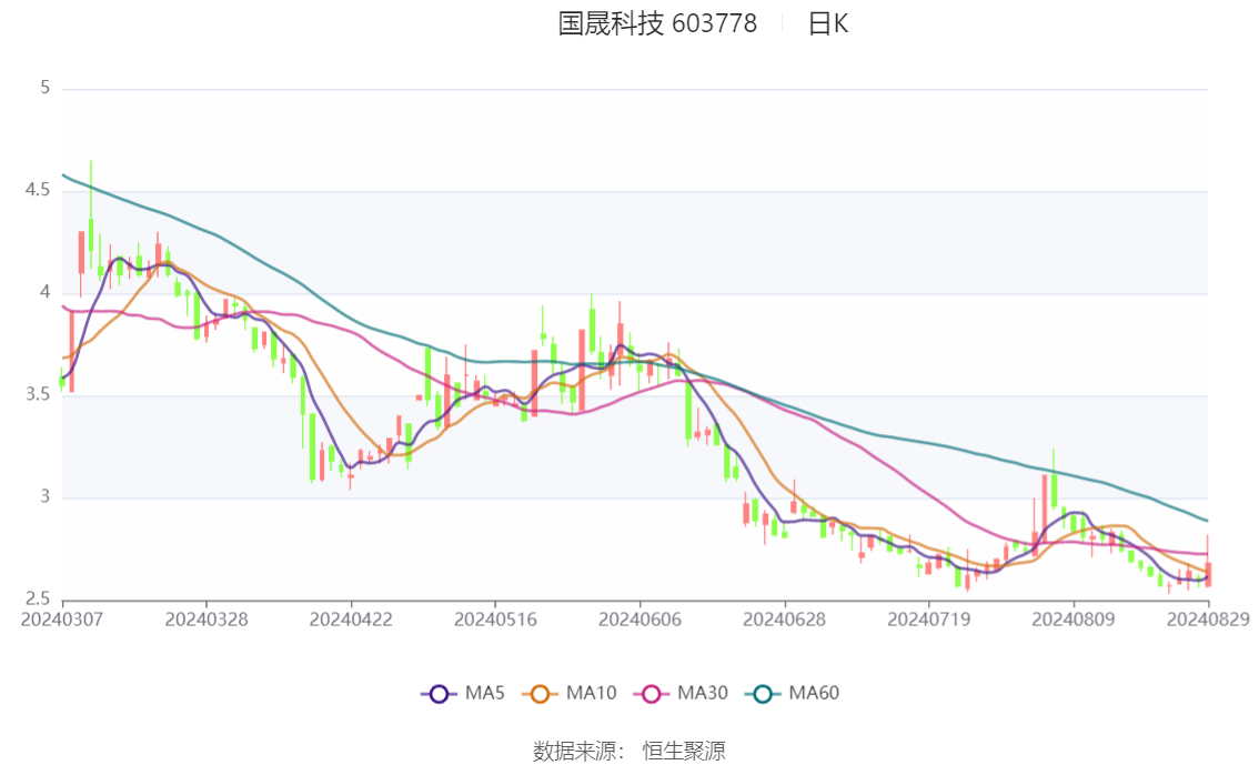 以8月29日收盘价计算,国晟科技目前市盈率(TTM)约为-9.38倍,市净率(LF)约为2.04倍,市销率(TTM)约为2.23倍。