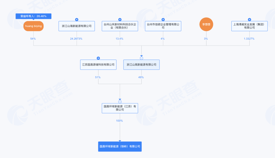 技术从哪而来呢?有媒体报道,今年7月,国晟能源与浙江山高新能源有限公司(以下简称“山高新能源”)合作成立国晟环球新能源(江苏)有限公司(简称“江苏环球”),双方分别控股51%和49%。江苏环球又全资设立铁岭环球,作为“年产10GWh固态电池产业链AI智能制造项目”的实施主体。