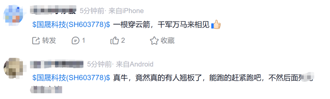 此后,1月15日—1月21日,国晟科技连续5个交易日跌停。此次国晟科技直接走出“地天板”,投资者的观点分歧严重,纷纷讨论“该跑”还是“该留”。