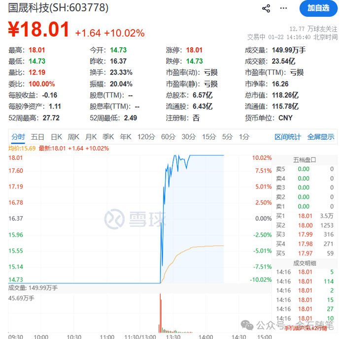 不过,就在刚刚,国晟科技上演地天板,股价强势涨停。