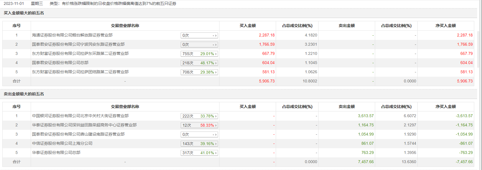 11月1日,宁波高发今日跌9.91%,全天换手率达15.21%,振幅达5.69%。龙虎榜数据显示,营业部席位合计净卖出1550.93万元。其中,中国银河证券北京中关村大街证券营业部、华泰证券深圳益田路荣超商务中心证券营业部分别卖出3613.57万元、1164.75万元;海通证券烟台解放路证券营业部、国泰君安证券宁波民安东路证券营业部分别买入2287.18万元、1766.59万元。