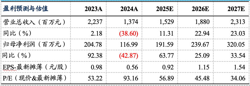 考虑到订单节奏,我们下调公司2025-2026年归母净利润为1.9/2.4亿元(原值2.7/3.3亿元),并预计公司2027年归母净利润为3.2亿元,当前股价对应动态PE分别为57/45/34倍。考虑到公司泛半导体业务具备高成长性,维持“增持”评级。