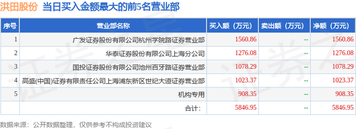 12月25日洪田股份(603800)龙虎榜数据:机构净买入908.35万元