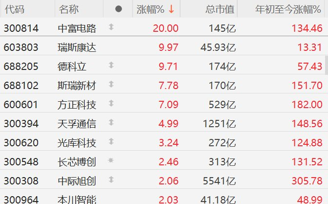 A股部分CPO概念股拉升,中富电路、瑞斯康达涨停